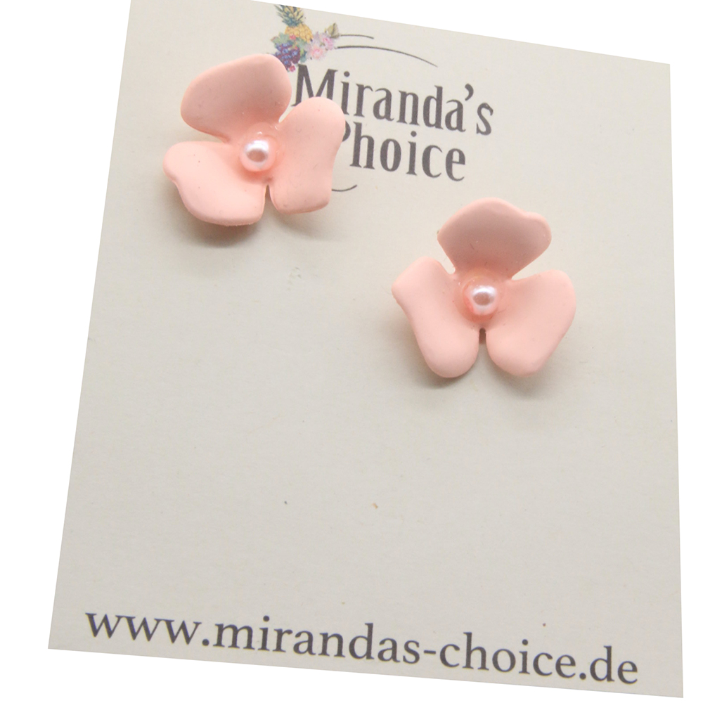 3 Blättrige Blüten in mattem Rosa - Ohrstecker