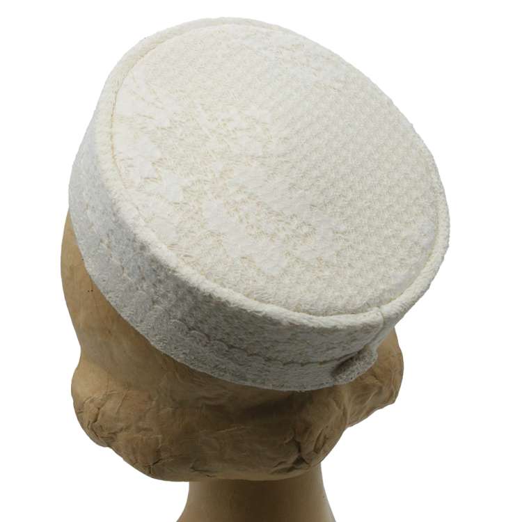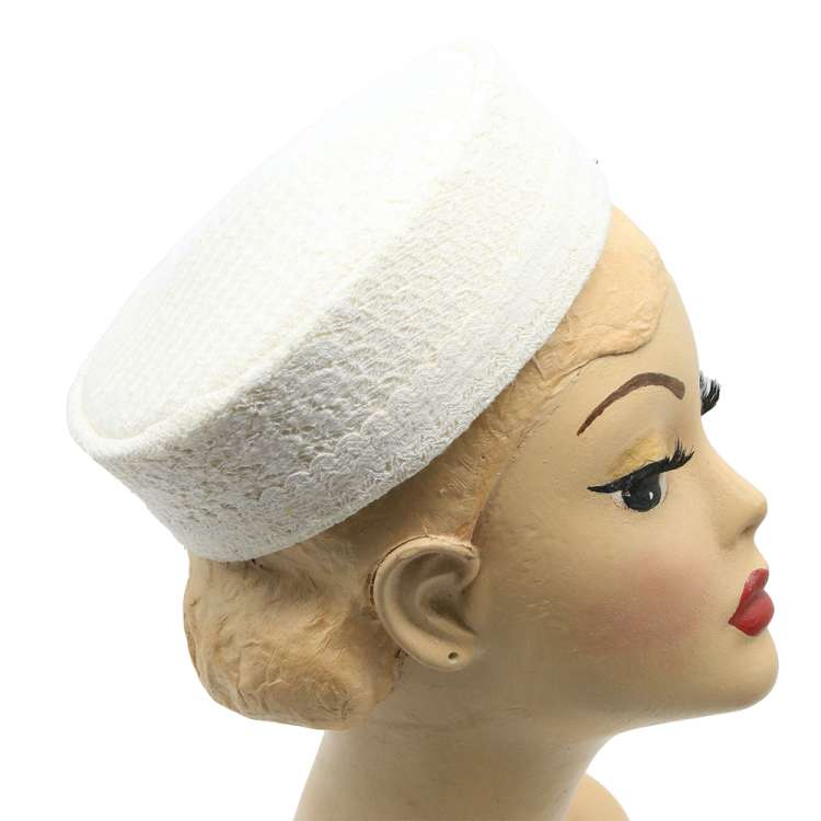 Pillbox Hut mit Spitze in Ivory - runder Hut ohne Krempe im 50th Stil