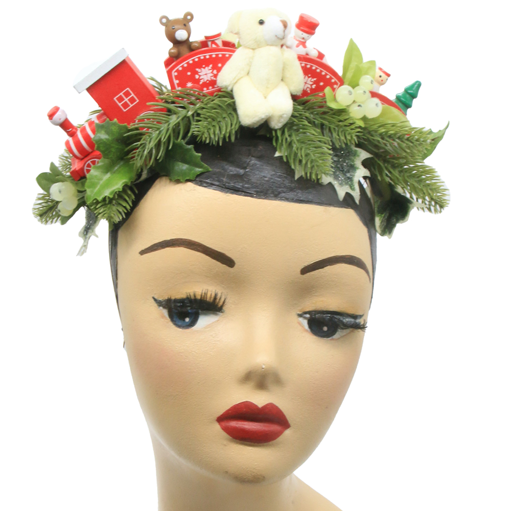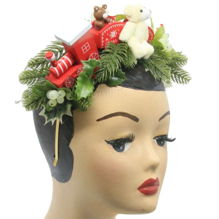 Xmas Kopfschmuck mit Tannen und Holzeisenbahn