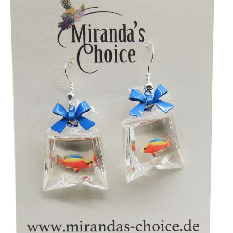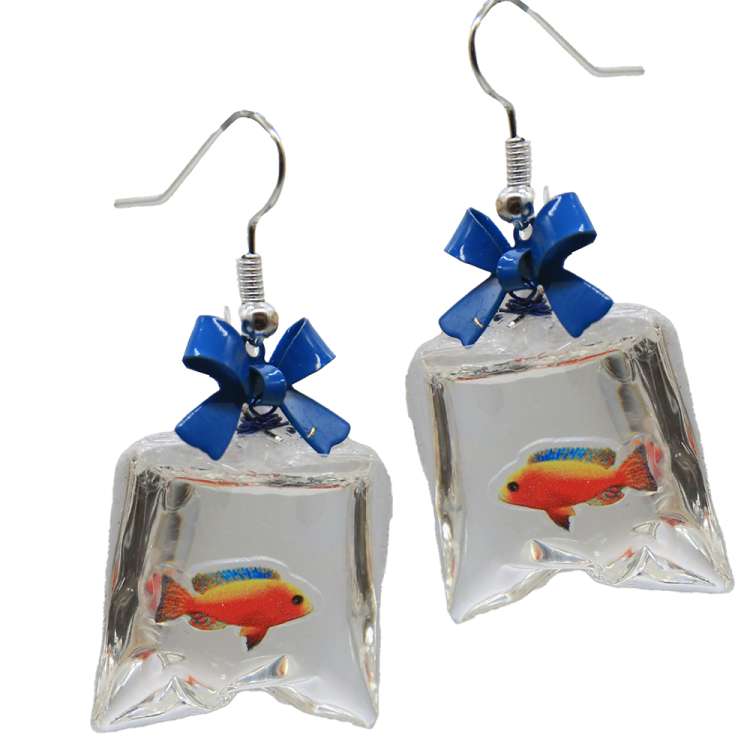 Earrings with fish in a bag