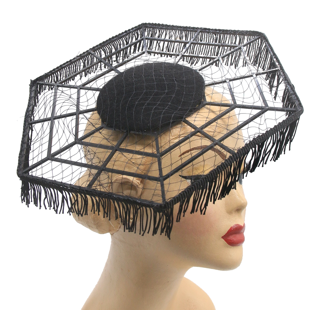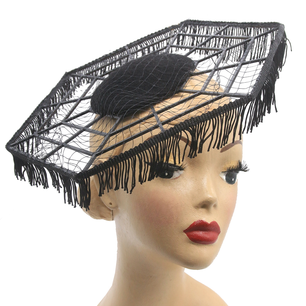 Filigree spider web hat with fringes