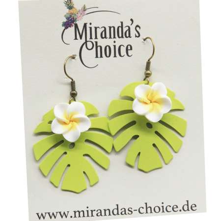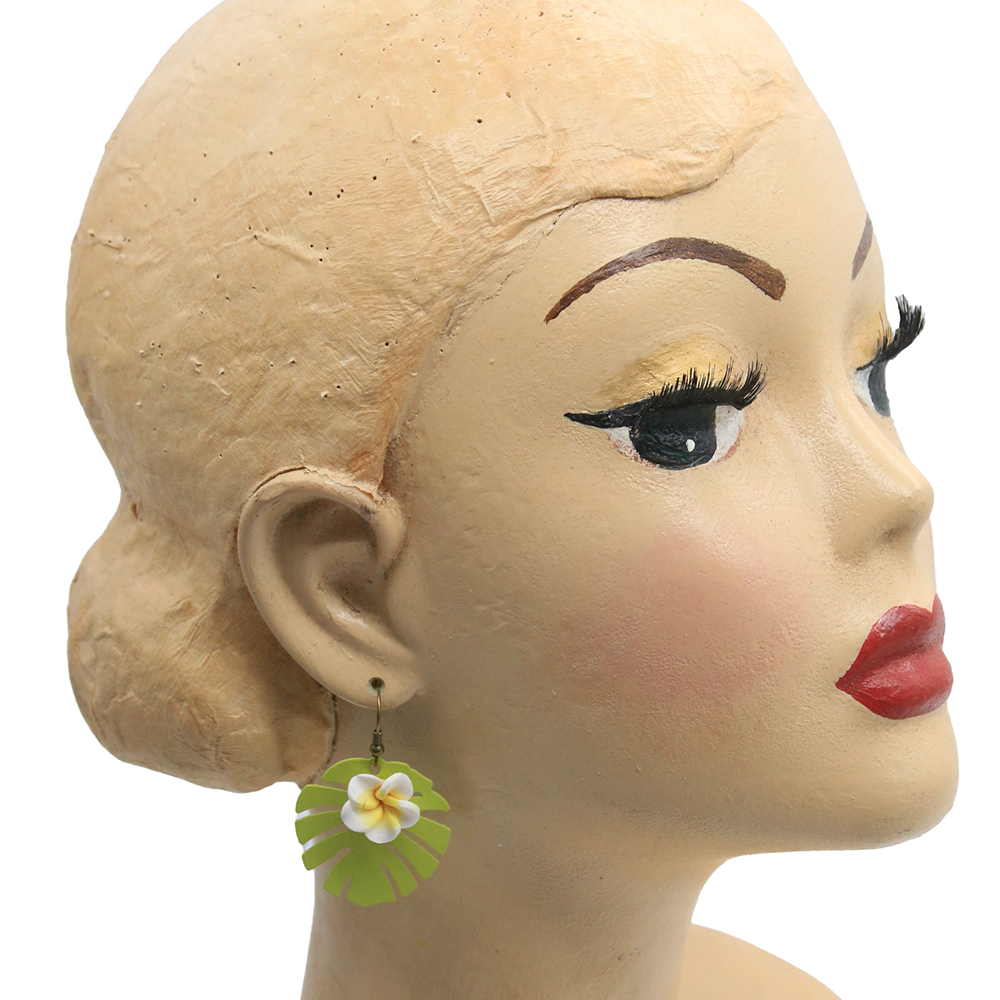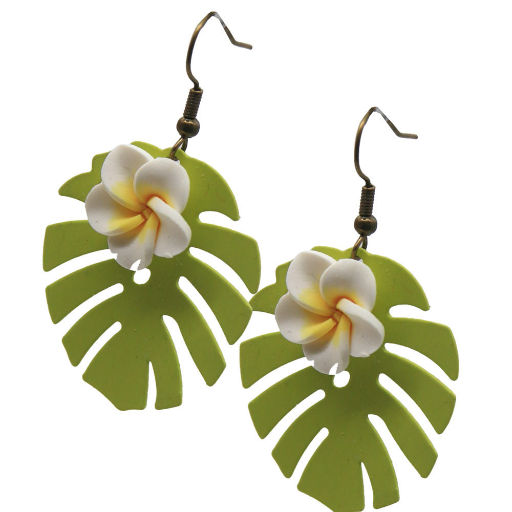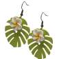 White Frangipani flower & Monstera leaf earrings