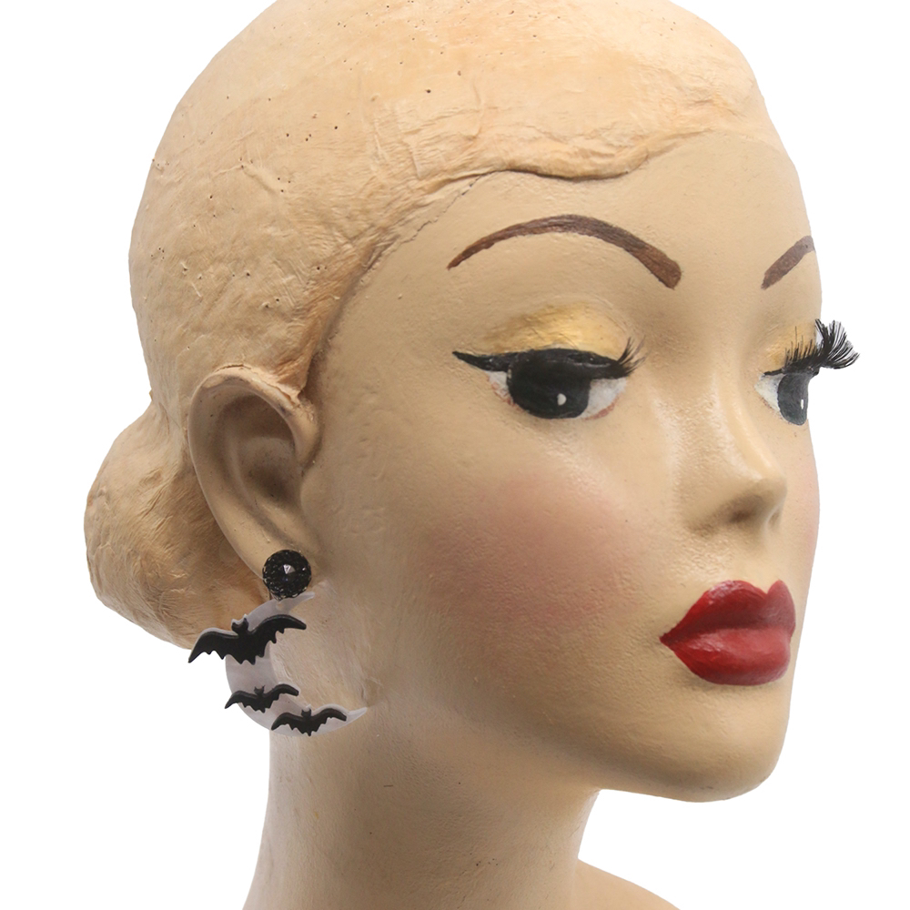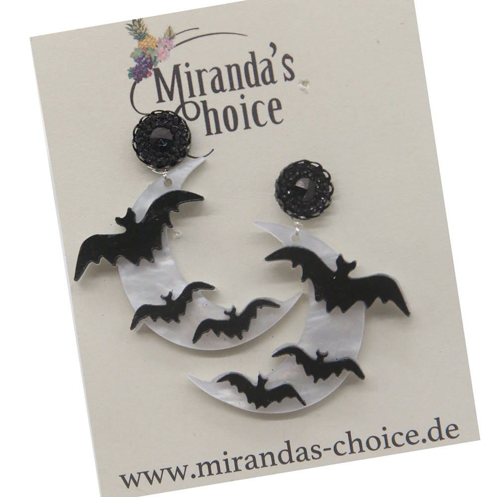 Stud earrings with bats and moon